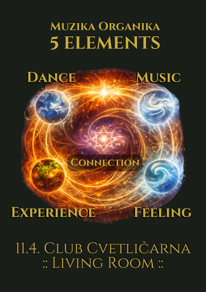 5 ELEMENTS is a one-night fusion of electronic clubbing, live instruments, dance, fire & art performances, and subtle mystical ceremony in a SAFE SPACE— taking place for the first time in Slovenia.